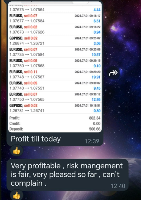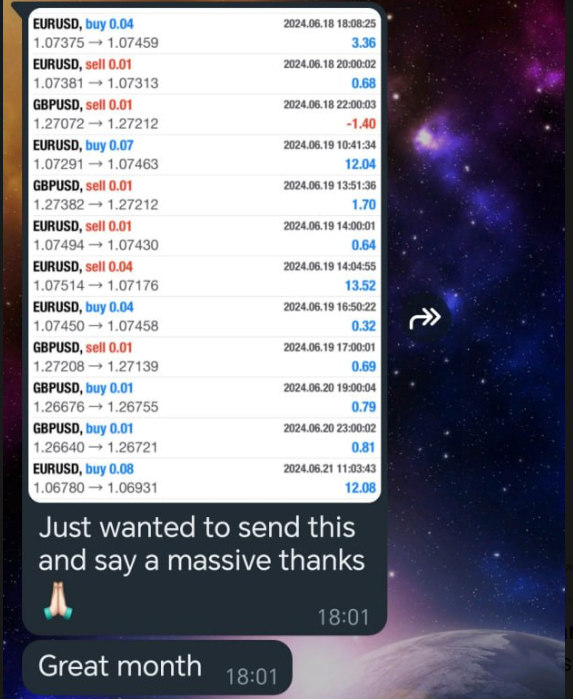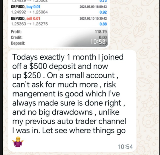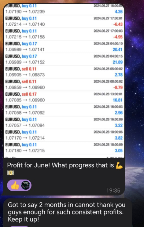 The progress with our Copytrading is always visible , he can't thank us enough after seeing the results for 2 month with consistent profits